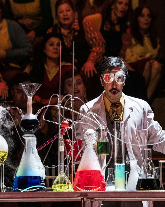 Director Oliver Mears places the action at a British college in the 1970s. The slightly nerdy student Nemorino falls madly in love with the young teacher Adina when he hears her read stories about Tristan, Isolde and the love potion that brings them together. But it appears that Nemorino does not have a chance, especially not when the handsome Sergeant Belcore shows up to enlist young men for service. That’s when the science teacher and quack Dulcamara propose a quick fix in the form of a love potion!