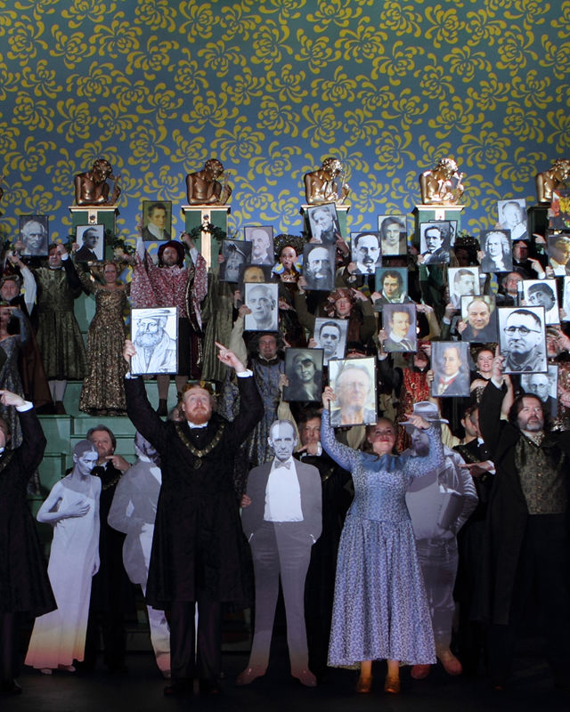Director Richard Jones succeeds in bringing out the humorous and surrealistic aspects of the piece, while at the same time portraying the various characters in Nuremberg with warmth and understanding. The production has enjoyed resounding success in several British opera houses. The Telegraph has called it “A total triumph”, while The Guardian acclaimed it for its “sharp focus, humour and inspiration”.
