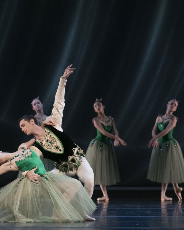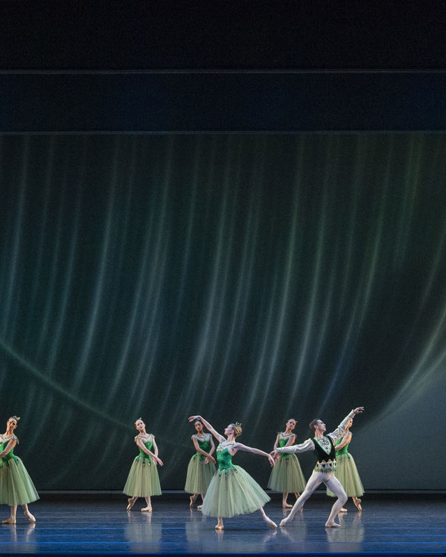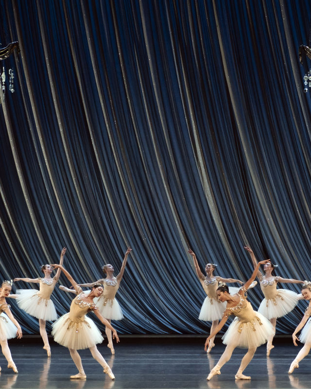 Balanchine was inspired by the work of jewellery designer Claude Arpels. He wanted to conjure up the essence of three different jewels and create three different moods through dance, colours and music. It starts with the elegant music of Fauré, continues with the fresh tones of Stravinsky and concludes with the grandeur of Tchaikovsky.