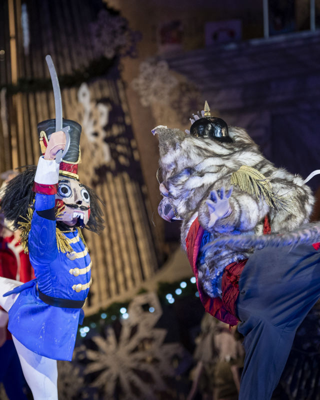 Men det er ikke bare dukken som forvandles: Gjestene blir til rotter og mus, og alle julepresangene blir levende og byr opp til dans – styrt av Drosselmeyer. I et forvokst, litt skummelt univers må prinsen og Clara kjempe mot dyrene, med selveste rottekongen i spissen.